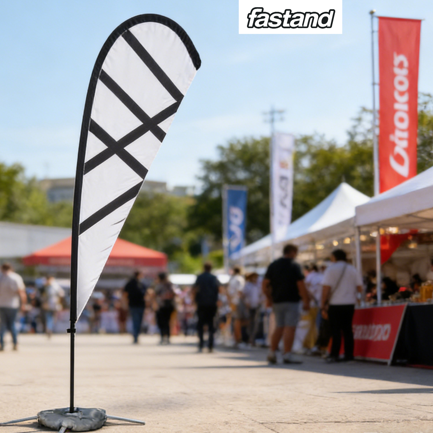Atena,bandeira em forma de gota:novas soluções para comunicar em eventos ao ar livre